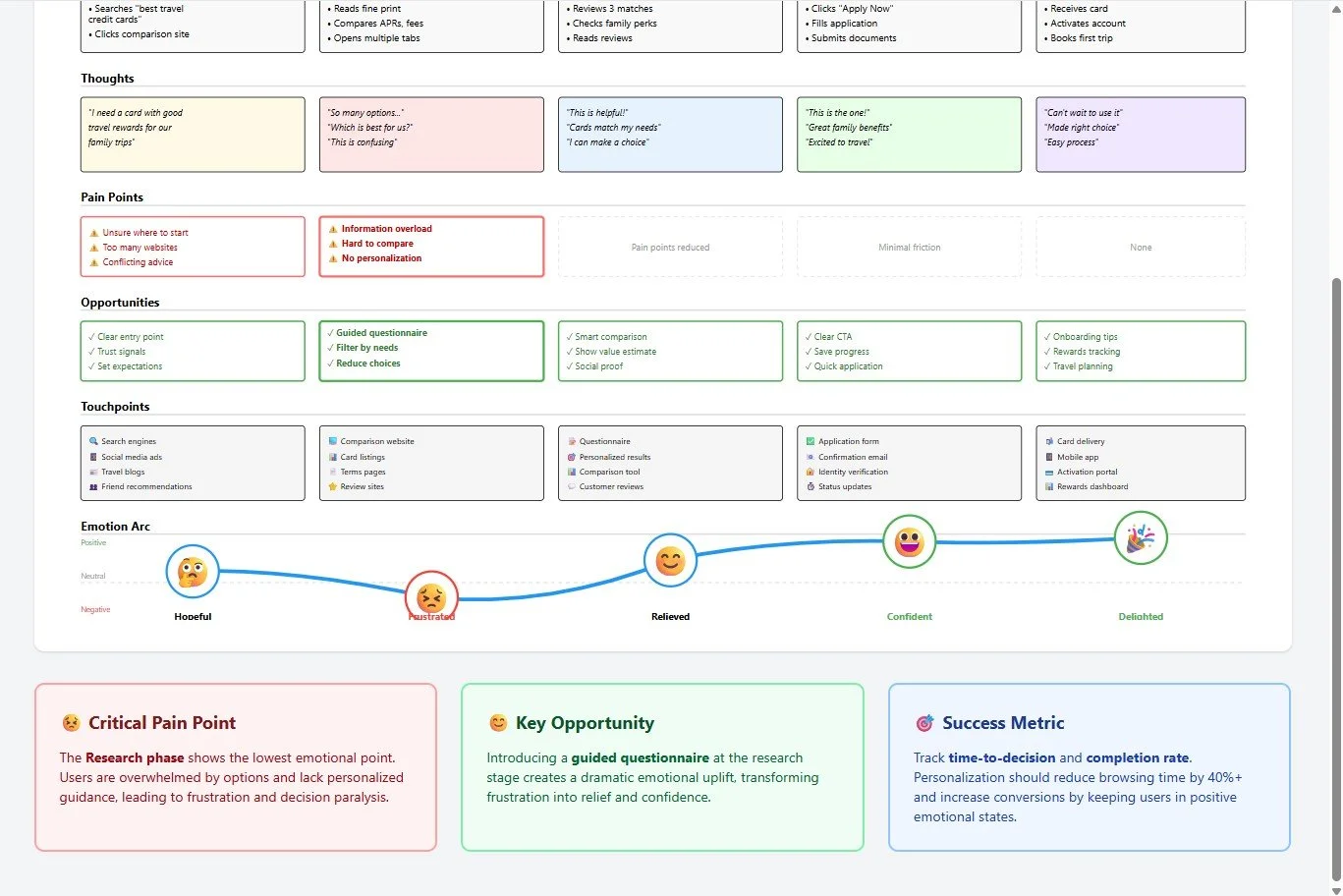 On-Screen UI Elements: Long list of travel cards Dense comparison table Small-print rewards language No personalization cues